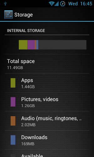 Na parte de “Configurações” descobrirá outra informação útil, habitualmente encontrada sob opção “Armazenamento”. Aqui pode ver quais são os ficheiros que ocupam mais espaço. A sua experiência com o seu telefone vai melhorar bastante se apagar as aplicações que não utiliza, nem que seja só para uma melhor visualização daquilo que realmente usa.