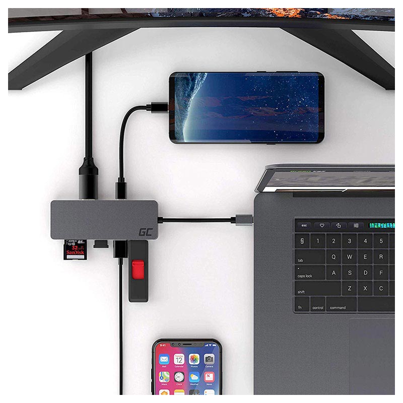 Adaptador 7 em 1 USB-C Multiportas Green Cell com Função de Carregamento