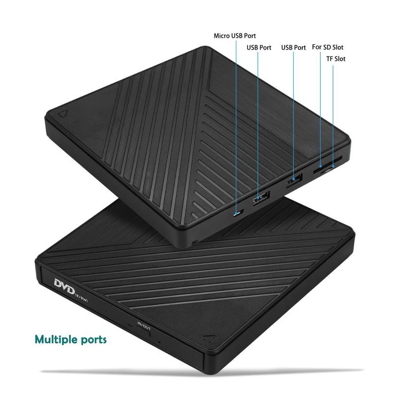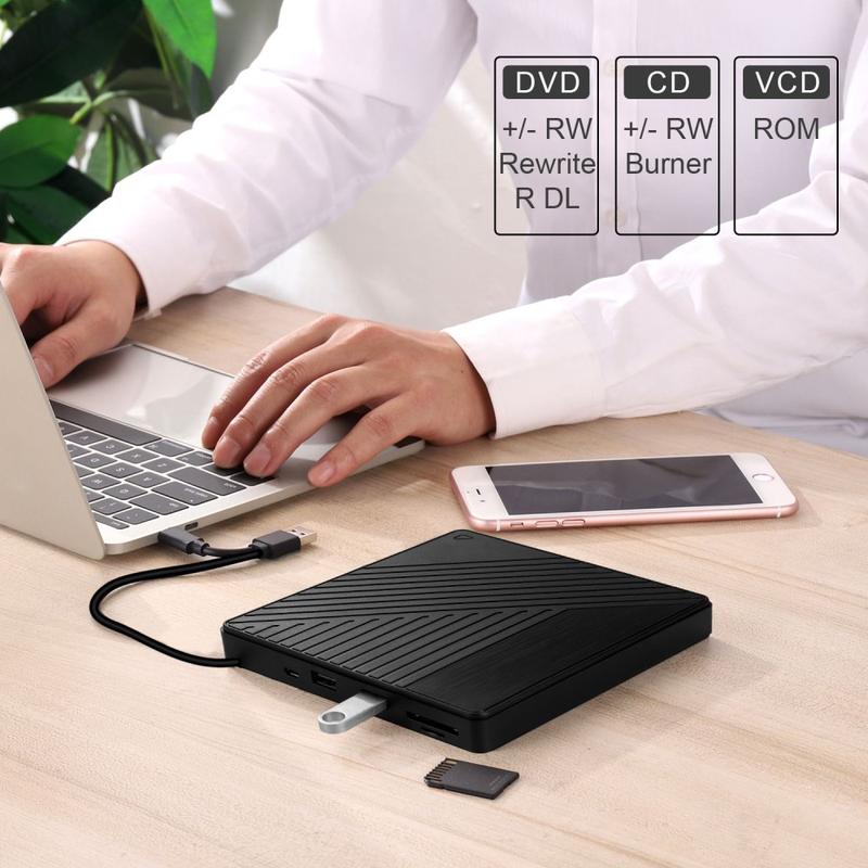 005 Unidade ótica externa USB-C/USB com leitor de cartões SD/TF - Reprodução e gravação de CD/DVD