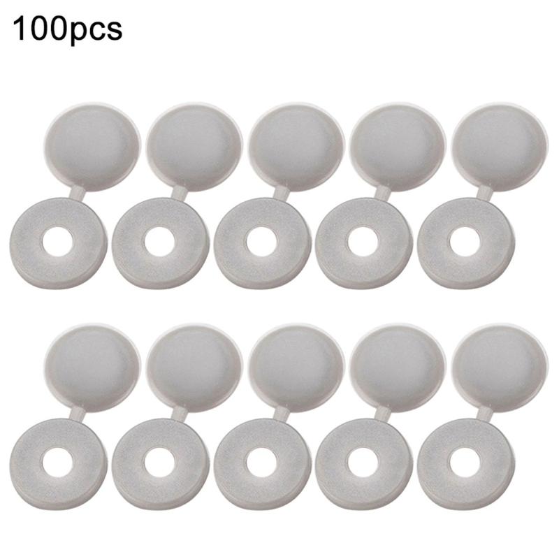 100 unidades. Tampas de plástico com dobradiças para parafusos - 13 mm de diâmetro exterior, 5 mm de orifício, tampas de parafusos de encaixe para parafusos auto-roscantes