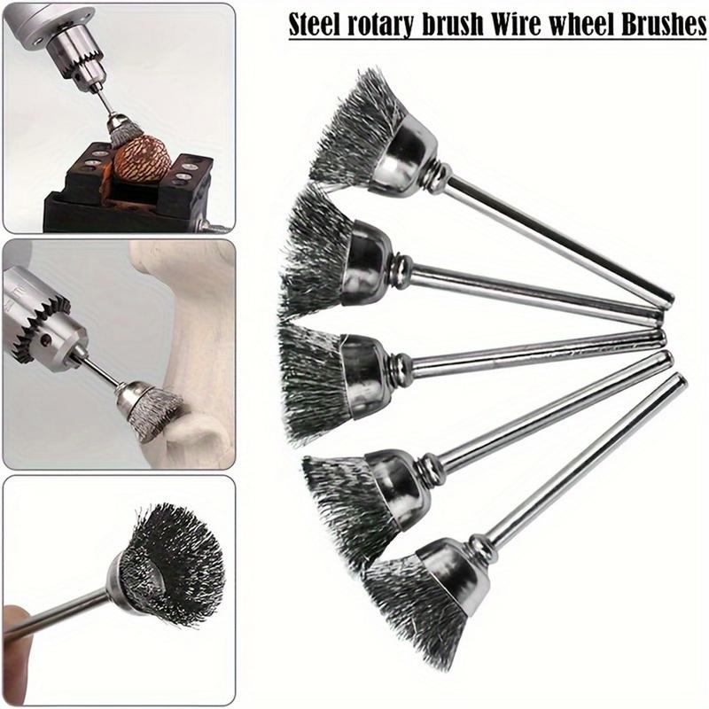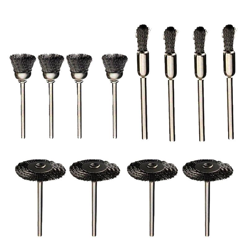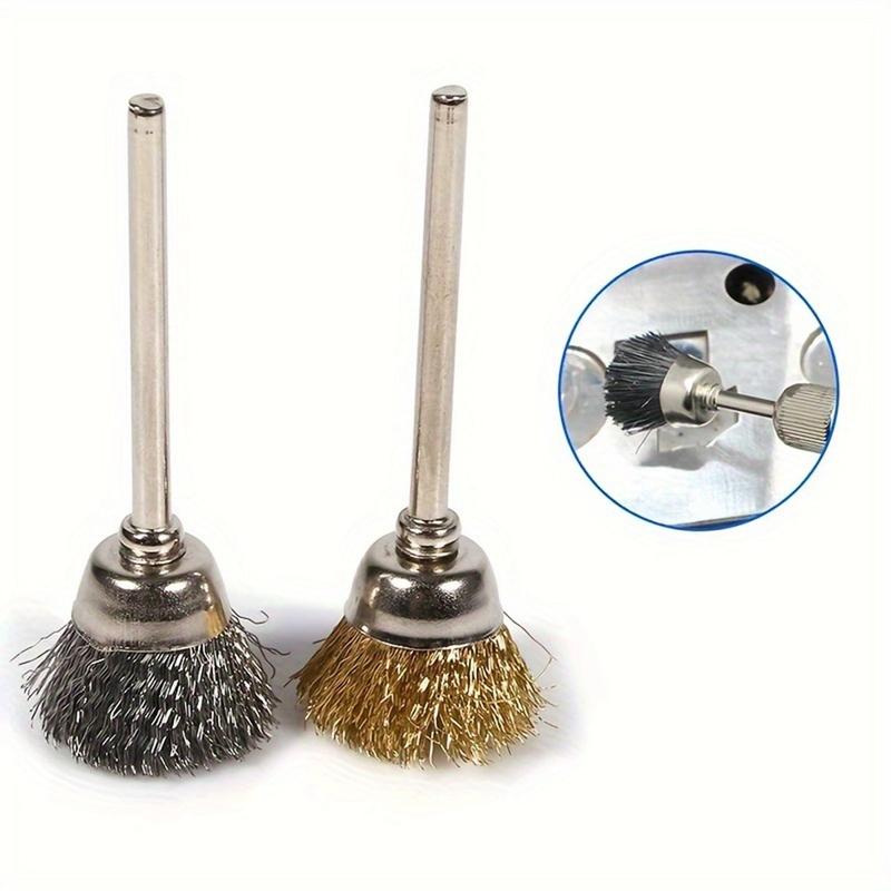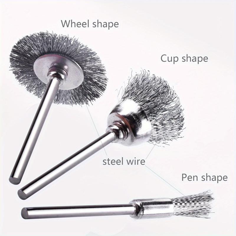 12 peças. Conjunto de escovas de arame de aço com haste de 3mm - em forma de caneta, taça e T para remoção de ferrugem e polimento de ferramentas rotativas
