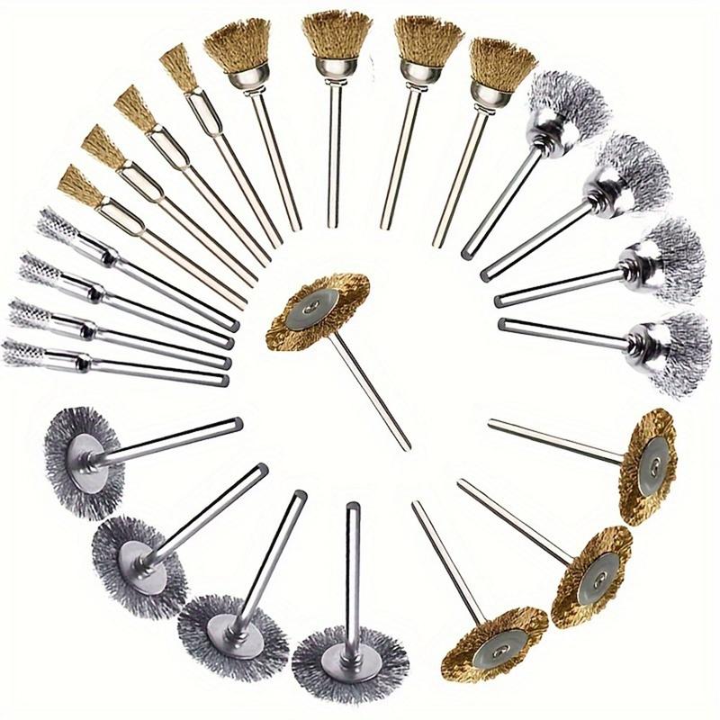 Dê uma nova vida a todas as ferramentas rotativas da sua oficina com este versátil kit de 12 peças de escovas de arame de aço. O conjunto inclui quatro escovas em forma de caneta, quatro em forma de taça e quatro em forma de T, cada uma equipada com uma haste padrão de 3mm que encaixa diretamente em mini berbequins, rebarbadoras eléctricas e ferramentas rotativas de passatempo. Quer esteja a descascar tinta de corrimões, a polir cordões de soldadura em aço inoxidável ou a limpar depósitos de carbono de peças de motor, as cerdas de aço de alta resistência mordem a sujidade sem arranhar o metal de base.
