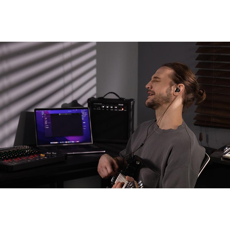 O microfone MEMS permite uma comunicação perfeita durante as chamadas telefónicas. Entretanto, os 3 botões práticos permitem-lhe alternar entre música e chamadas. Além disso, o conetor MMCX banhado a ouro permite uma fácil remoção e proporciona uma flexibilidade e conveniência inigualáveis. Isto permite-lhe adaptar rapidamente os auscultadores às suas necessidades e utilizar vários tipos de cabos. A embalagem inclui também um adaptador USB-C de alta resolução para 3,5 mm.