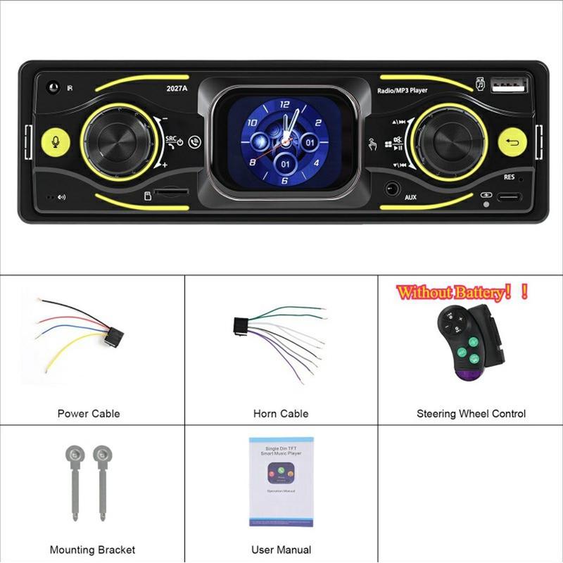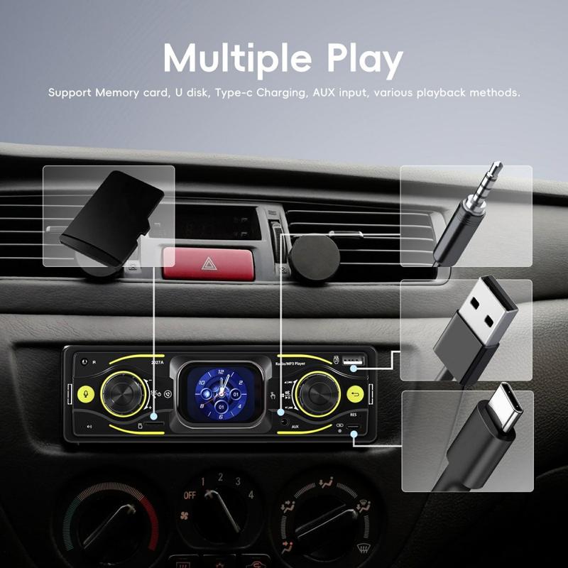 2027A Auto-rádio DIN único com ecrã tátil de 2.17" - Compatível com Bluetooth 5.0, FM/AM/RDS, USB-C, EQ, controlo no volante