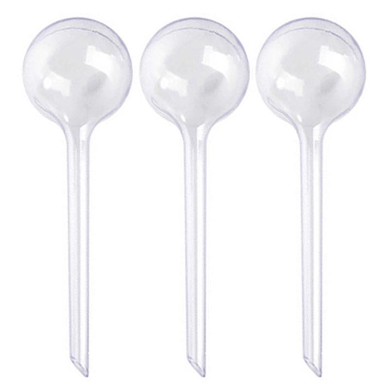 A extremidade do tubo dos globos de rega automática foi afiada, pelo que basta encher o globo e depois inseri-lo no solo para a rega automática