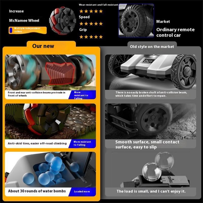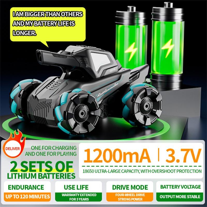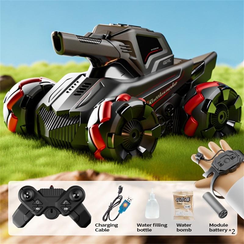 4DRC 4D-Y8 RC Tank Car / 4WD Atirador de balas de água todo-o-terreno com controlo duplo e duas baterias - 1200mAh