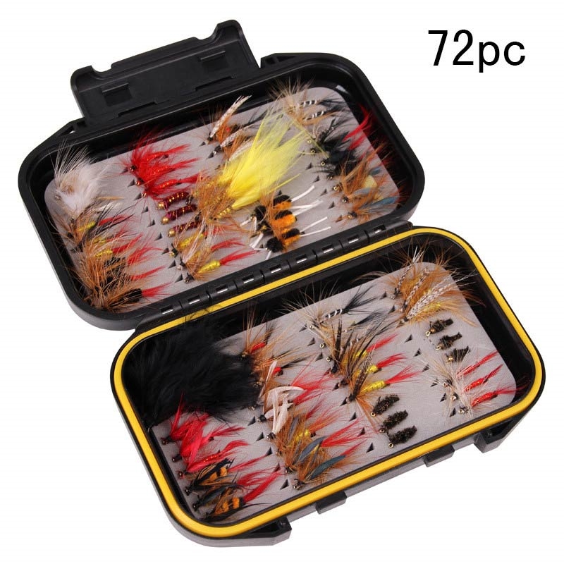 Kit de 72 peças para isco de pesca com mosca - Moscas secas e molhadas, ninfas e serpentinas feitas à mão com caixa de armazenamento à prova de água