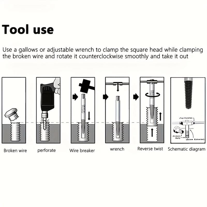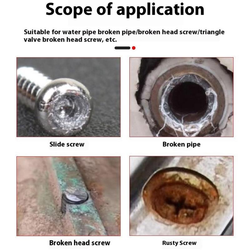 - Utilização versátil - remove parafusos danificados, parafusos de válvulas triangulares, cavilhas partidas e niples de canalização enferrujados