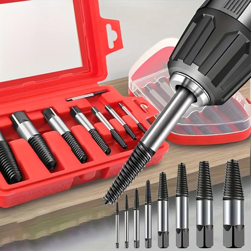 8 peças. Conjunto de extrator de parafusos e cavilhas em aço de alto teor de carbono - Removedor de parafusos partidos de precisão