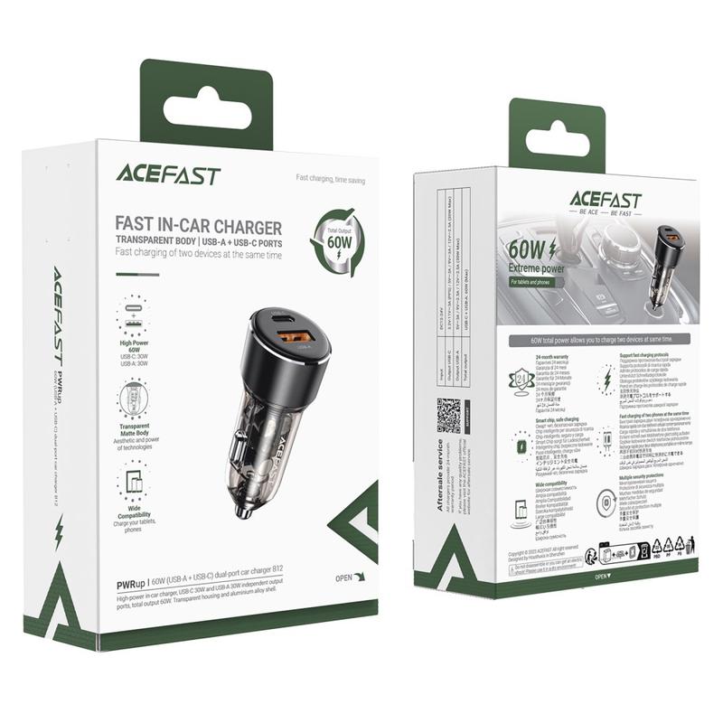 ACEFAST B12 60W USB-A+Tipo C Adaptador de carregamento rápido de telemóvel para isqueiro de automóvel