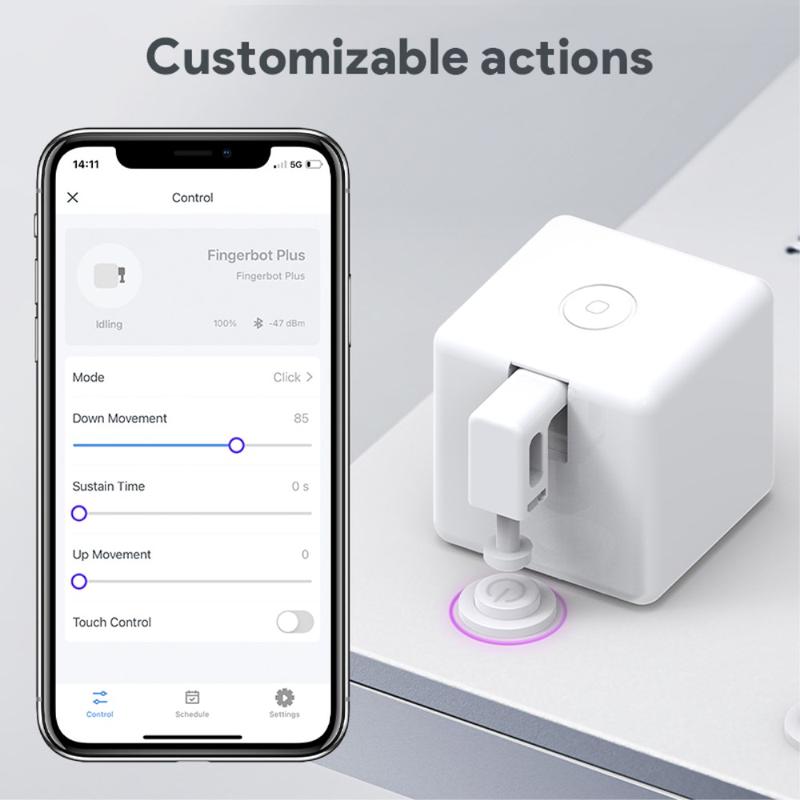 O Fingerbot Plus pode automatizar praticamente qualquer dispositivo com um botão físico - de máquinas de café e condicionadores de ar a interruptores de parede e eletrônicos de mesa. O seu motor de precisão e a distância de acionamento personalizável tornam-no adaptável a inúmeros casos de utilização, colmatando a lacuna entre os aparelhos tradicionais e a moderna tecnologia de casa inteligente.
