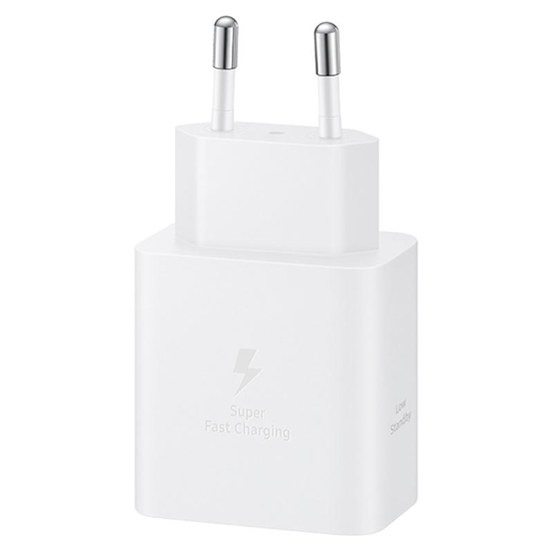 Carregue os seus dispositivos Galaxy a uma velocidade incrível com o carregador de viagem USB-C original da Samsung. Este adaptador de alimentação muito rápido fornece a potência máxima de 45W a dispositivos compatíveis, mas pode também adaptar-se às capacidades de outros modelos. Protege contra sobrecarregamentos, curto-circuitos, flutuações de temperatura e muito mais, para que os seus dispositivos permaneçam seguros enquanto carregam.