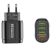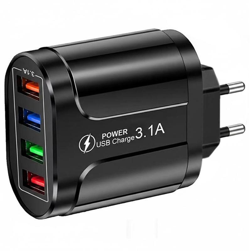 Adaptador de Alimentação USB Universal para Carregamento Rápido de 4 Portas - QC3.0, 48W, Ficha UE