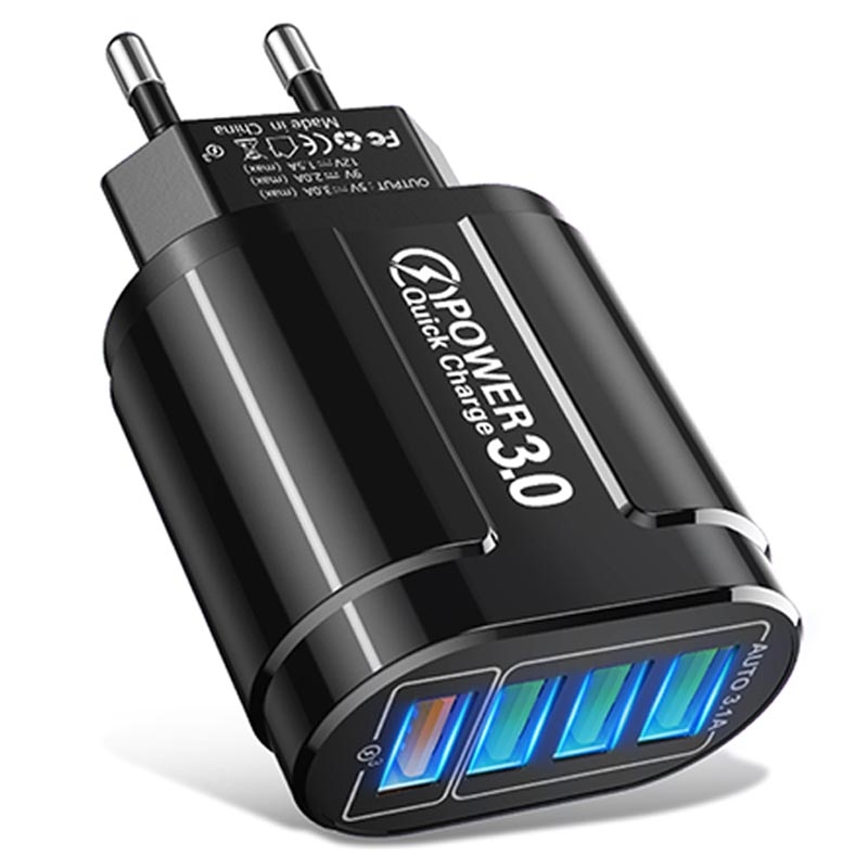 - Carregador USB universal de carregamento rápido com quatro portas e 48W de potência