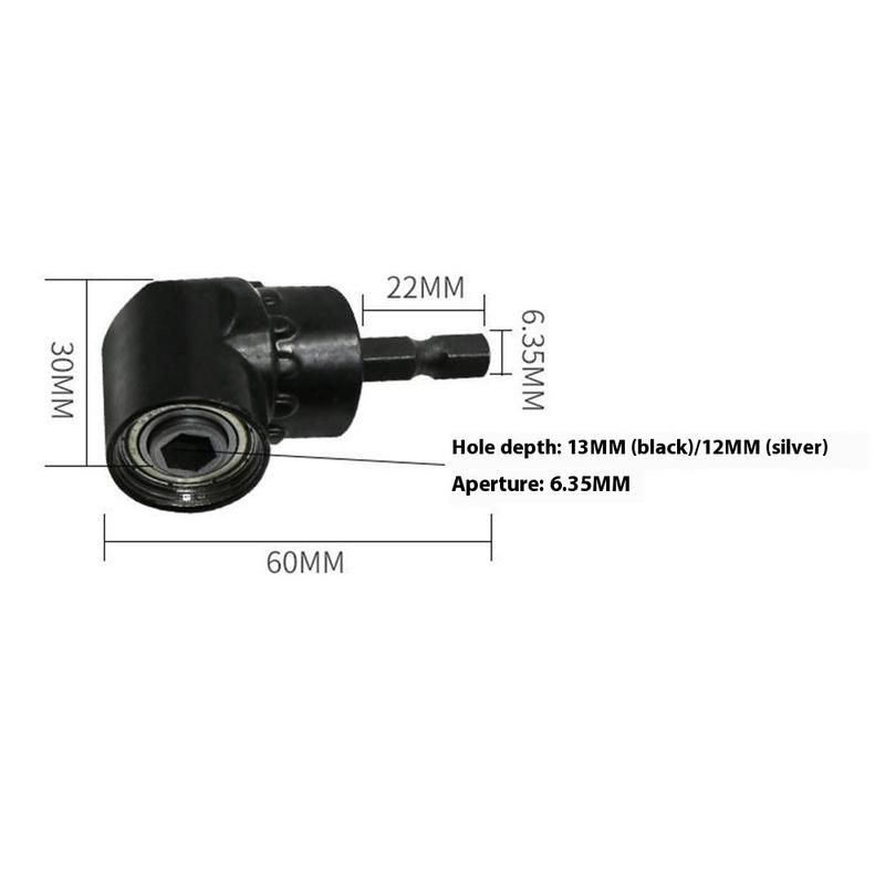 Cabeça de broca giratória de canto de 105° - Adaptador de broca de chave de fendas de ângulo reto, aço cromo-vanádio, sextavado de 1/4", 60 × 30 mm