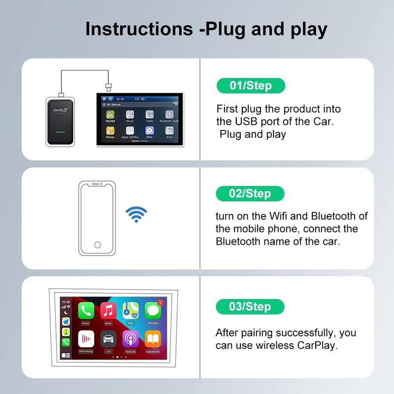 - Design Plug and Play: Atualize sua função CarPlay com fio existente para sem fio sem qualquer desmontagem ou configuração complexa.