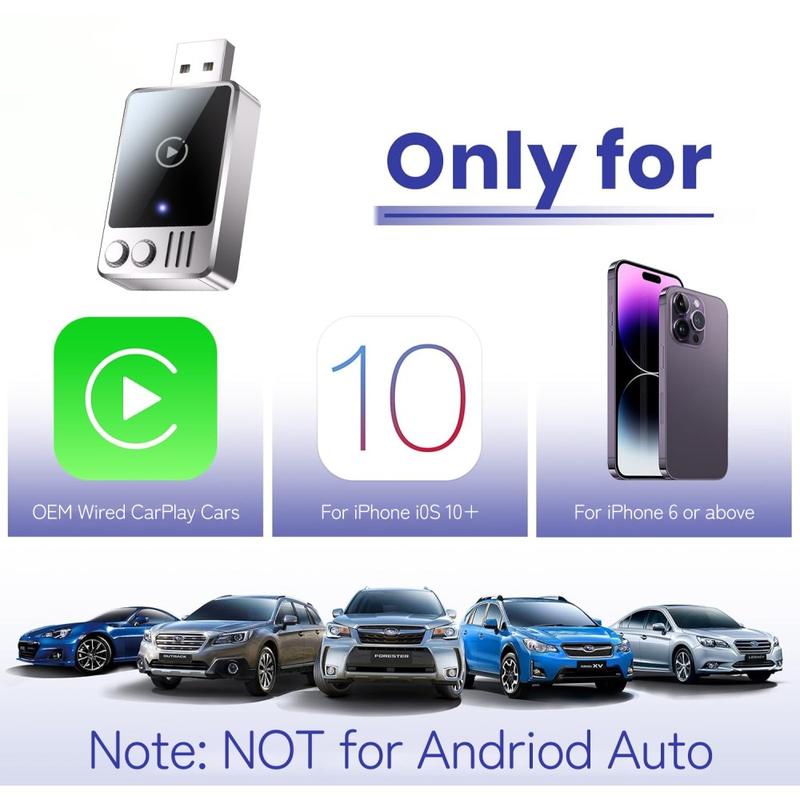 Compatível com o iPhone 6 e modelos mais recentes com iOS 10 ou posterior, o adaptador funciona com todos os veículos que suportam CarPlay com fios de fábrica, tornando-o uma atualização versátil para muitos modelos de automóveis.