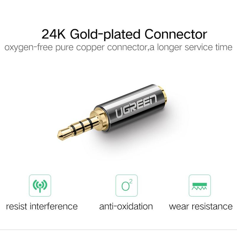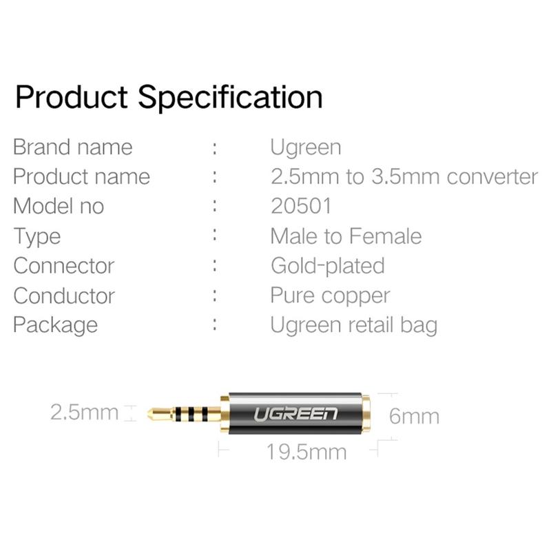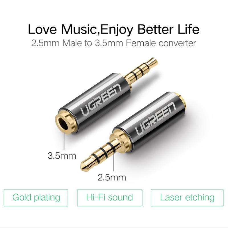 Ugreen Adaptador de áudio estéreo de 2.5mm macho para 3.5mm fêmea com conectores banhados a ouro