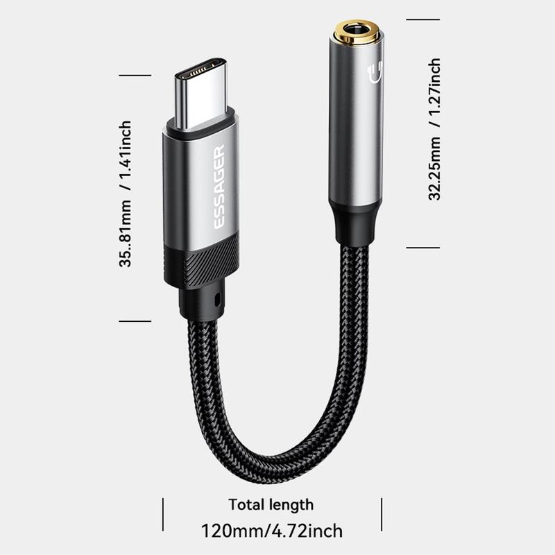 Adaptador de áudio Essager Type-C para 3.5mm - Som Hi-Fi com chip DAC