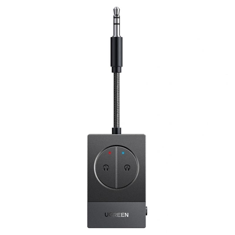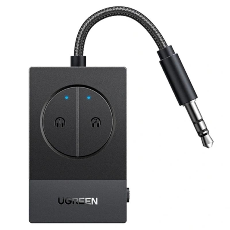 Adaptador de áudio Bluetooth 5.4 Ugreen BT305 - Duas tomadas de 3.5mm, recarregável por USB-C, bateria com 19 horas de autonomia, emparelhamento de 2 auscultadores