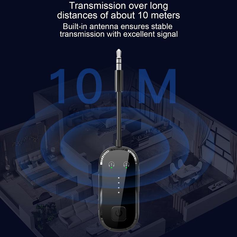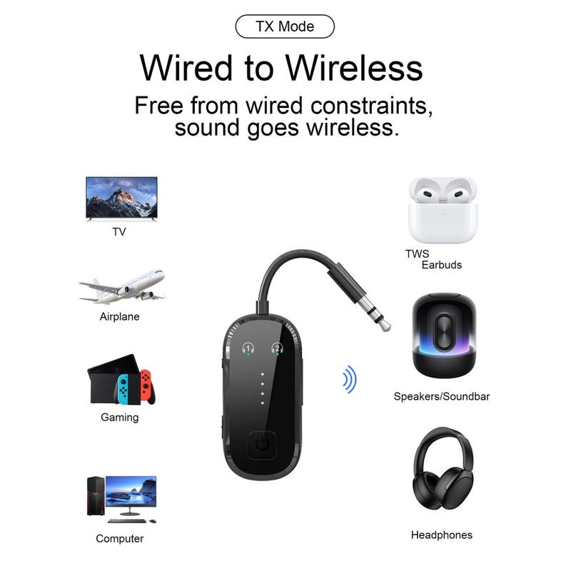 Com a tecnologia Bluetooth 5.4, o dispositivo oferece uma resposta mais rápida, conectividade estável e um desempenho sem fios eficiente. No modo transmissor, pode enviar áudio de fontes com fios para auscultadores ou colunas Bluetooth. No modo recetor, pode receber áudio sem fios do seu smartphone, tablet ou outro dispositivo compatível com Bluetooth e transmiti-lo para equipamento de áudio com fios através da ligação de 3,5 mm. O suporte dual link acrescenta ainda mais comodidade, permitindo a ligação a dois dispositivos Bluetooth ao mesmo tempo, facilitando a audição partilhada ou a alternância entre vários dispositivos.
