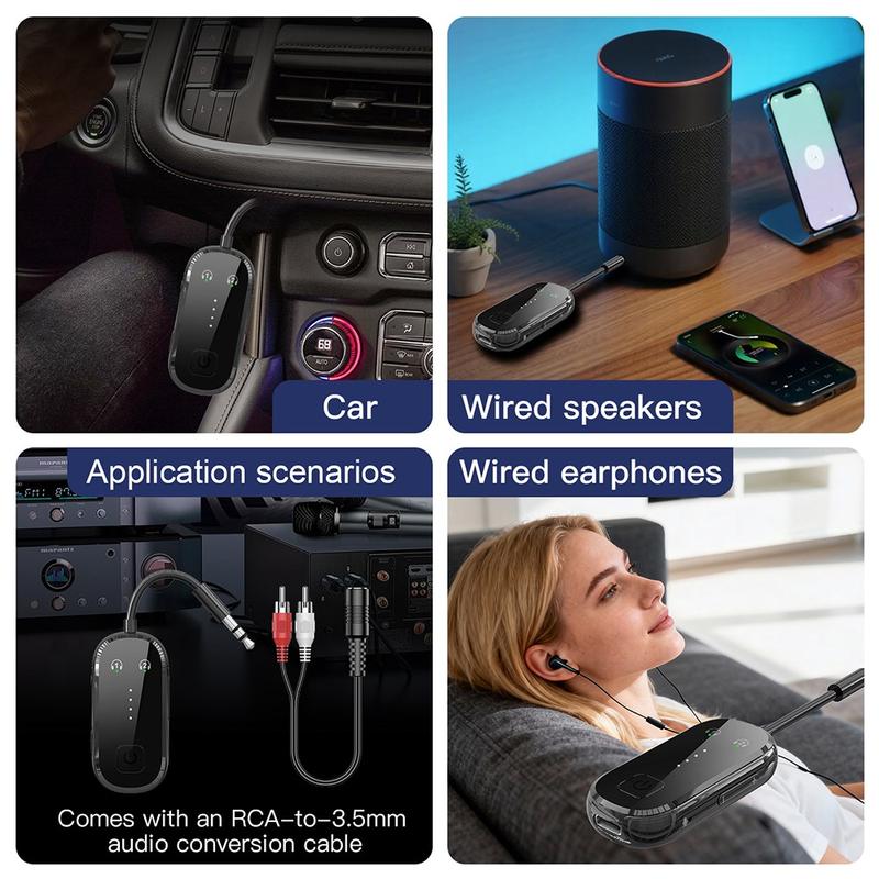 Este adaptador de áudio 2 em 1 com transmissor e recetor Bluetooth 5.4 e ligação dupla adiciona funcionalidade sem fios a dispositivos com fios através dos modos de transmissão e receção. Com suporte para áudio de 3,5 mm, adaptadores RCA e AUX, até 20 horas de autonomia da bateria, emparelhamento de dois dispositivos e carregamento Type-C, é uma solução prática para televisores, colunas, auscultadores, sistemas de áudio para automóveis e sistemas de som domésticos.