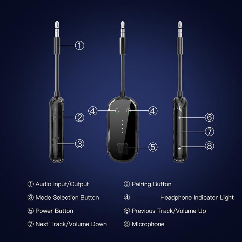- No modo TX, liga-se a dois auscultadores ou altifalantes Bluetooth