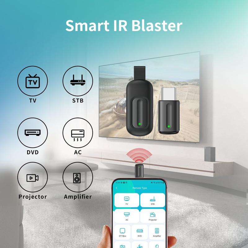 Sem baterias, sem carregamento e sem restrições específicas de aplicações - basta ligar o adaptador à porta Lightning/Tipo C do seu dispositivo e desfrutar de controlo imediato sobre a eletrónica doméstica baseada em IR.