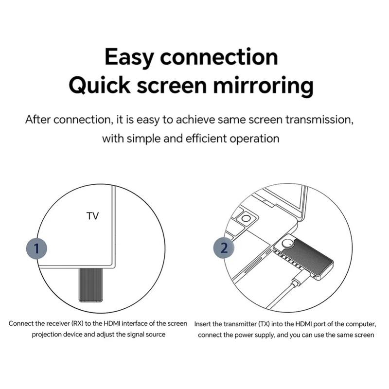 Corte o cabo HDMI e partilhe o seu ecrã em segundos. O adaptador de faixa vertical Q50 transmite vídeo Full-HD e áudio estéreo diretamente de um computador portátil para qualquer projetor ou TV até 50 m de distância, utilizando uma ligação rápida de banda dupla de 5GHz/2,4 GHz. Sem software, sem controladores, sem necessidade de rede Wi-Fi - basta ligar o transmissor Type-C ao PC, o recetor à porta HDMI do ecrã e começar a apresentar. A deteção automática de modo, uma taxa de atualização suave de 60 Hz e o equilíbrio de imagem integrado mantêm os diapositivos, folhas de cálculo e vídeos nítidos em todos os lugares da sala.