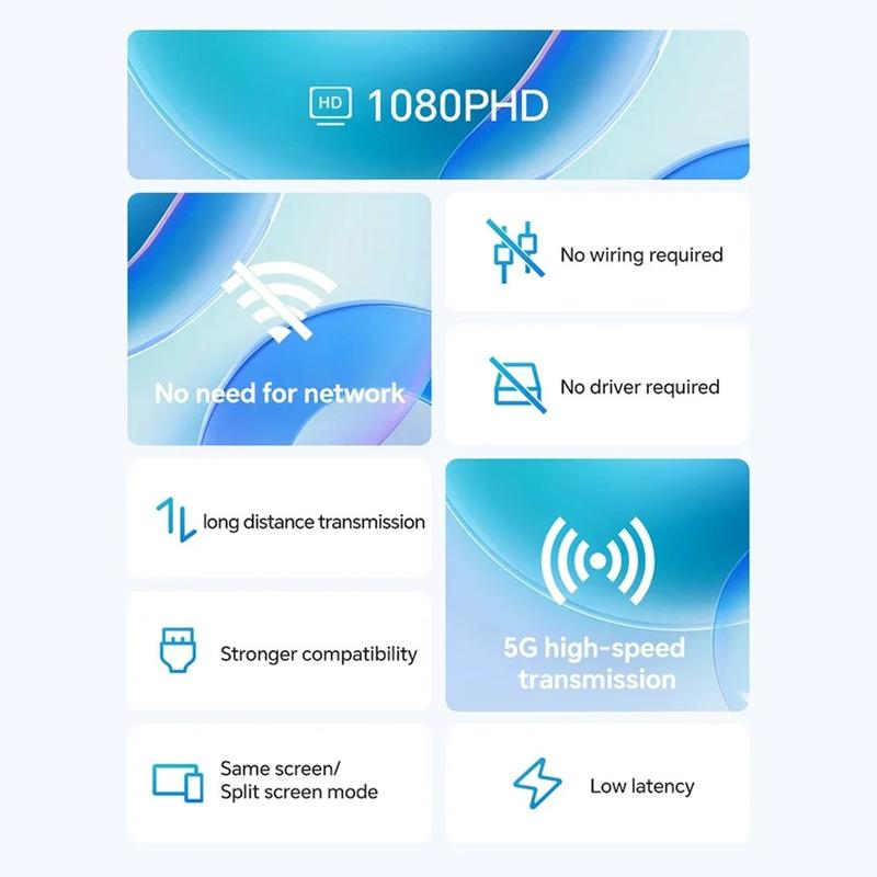 Adaptador de espelhamento de ecrã sem fios Q50 5GHz - 1080 p / 60 Hz Dongle de ecrã ponto-a-ponto para salas de conferência e salas de aula