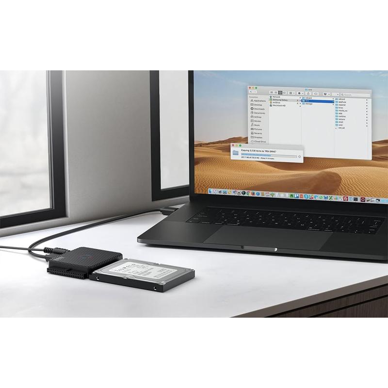 Adaptador universal FIDECO PL03 - gestão fácil de dados de diferentes unidades. O FIDECO PL03 é um adaptador USB 3.0 para IDE/SATA versátil, que permite ligar até três discos rígidos em simultâneo. O seu design compacto, a elevada velocidade de transferência de dados e a ampla compatibilidade tornam-no ideal tanto para profissionais como para utilizadores domésticos. O dispositivo permite a transferência rápida e conveniente de ficheiros entre diferentes dispositivos, facilitando o arquivo e a gestão de dados.