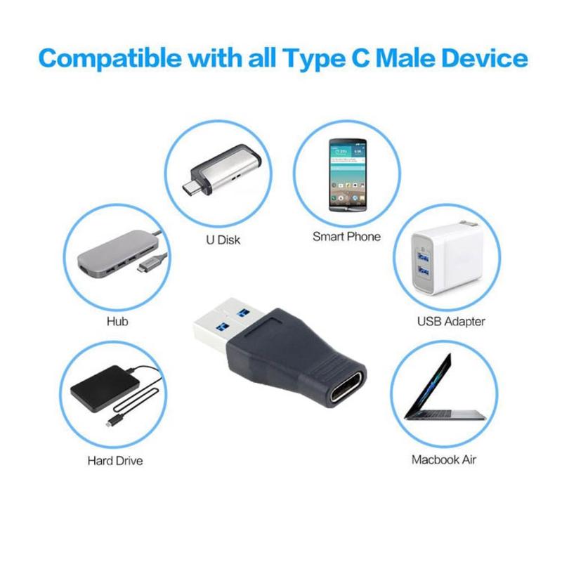 - Conversor USB-A macho para USB-C fêmea; suporta USB 3.0 SuperSpeed (um lado USB 2.0)