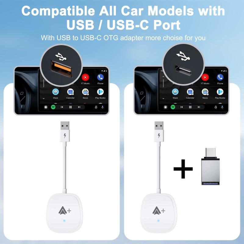 - Android Auto sem fios: Converte sistemas com fios em sistemas sem fios para maior comodidade.