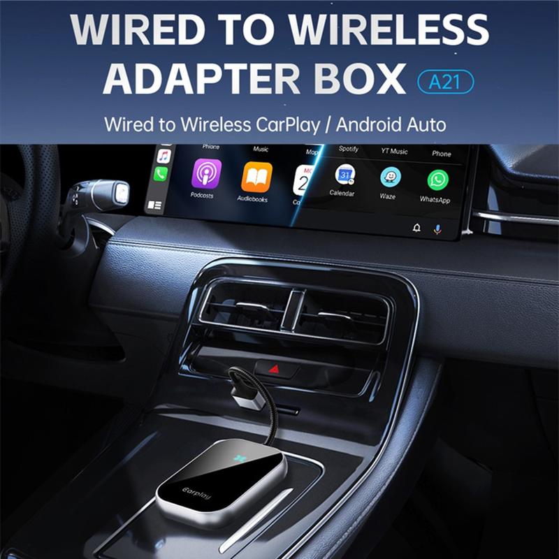 Melhore a sua experiência de condução com o adaptador sem fios CarPlay e Android Auto WiFi de 5,8 GHz A21. Este dispositivo inovador transforma o sistema CarPlay ou Android Auto com fios do seu veículo numa interface sem fios perfeita, proporcionando maior comodidade e um ambiente sem confusão. Compatível com uma vasta gama de veículos e smartphones, o adaptador A21 garante uma ligação suave e reactiva para todas as suas necessidades de infoentretenimento no automóvel.