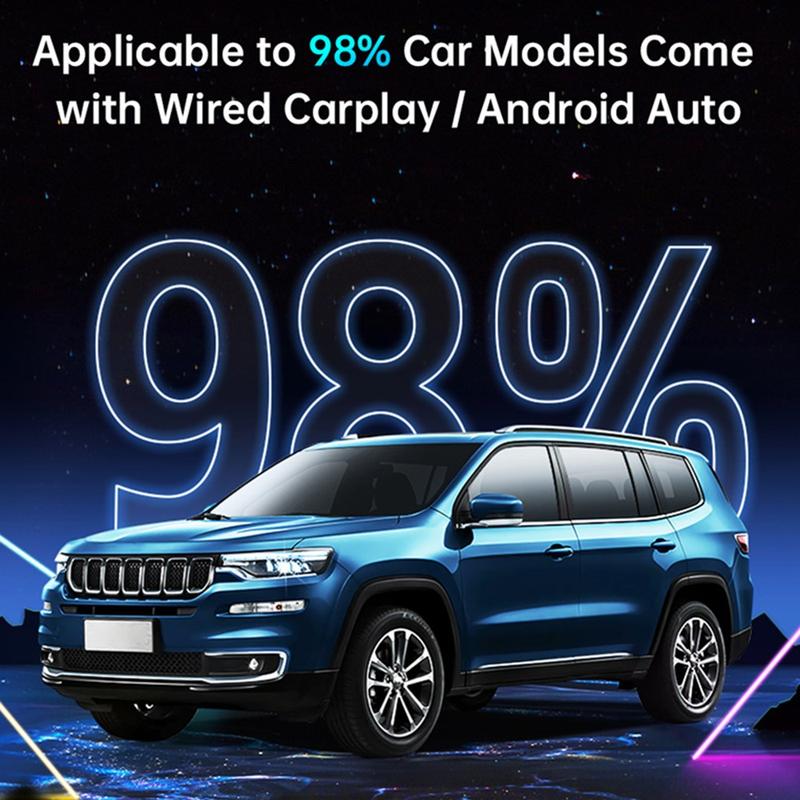 - Compatibilidade dupla: Suporta Apple CarPlay e Android Auto, permitindo que os usuários conectem sem fio seus dispositivos iOS ou Android ao sistema de infoentretenimento do carro.