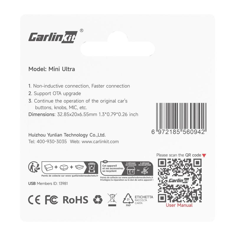 Adaptador sem fios Carlinkit Mini Ultra CarPlay / Android Auto - Corte o cabo, mantenha o controlo