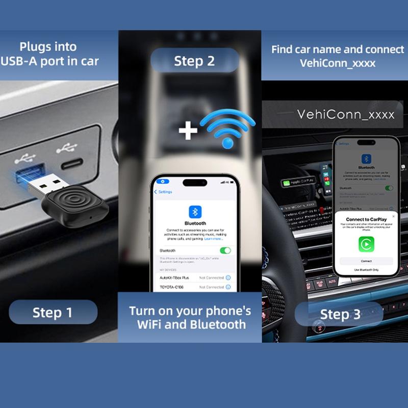 Esqueça os cabos emaranhados. Este adaptador do tamanho de um polegar é diretamente ligado à porta USB-A do seu automóvel e transforma o CarPlay ou o Android Auto de fábrica numa ligação sem fios perfeita. Dois toques e o seu telefone está no tablier, a música está a tocar, os mapas estão activos - tudo sem um cabo à vista.