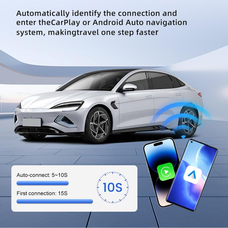 - Atualização sem fio: converta instantaneamente o CarPlay ou o Android Auto com fio do seu carro em uma conexão sem fio.