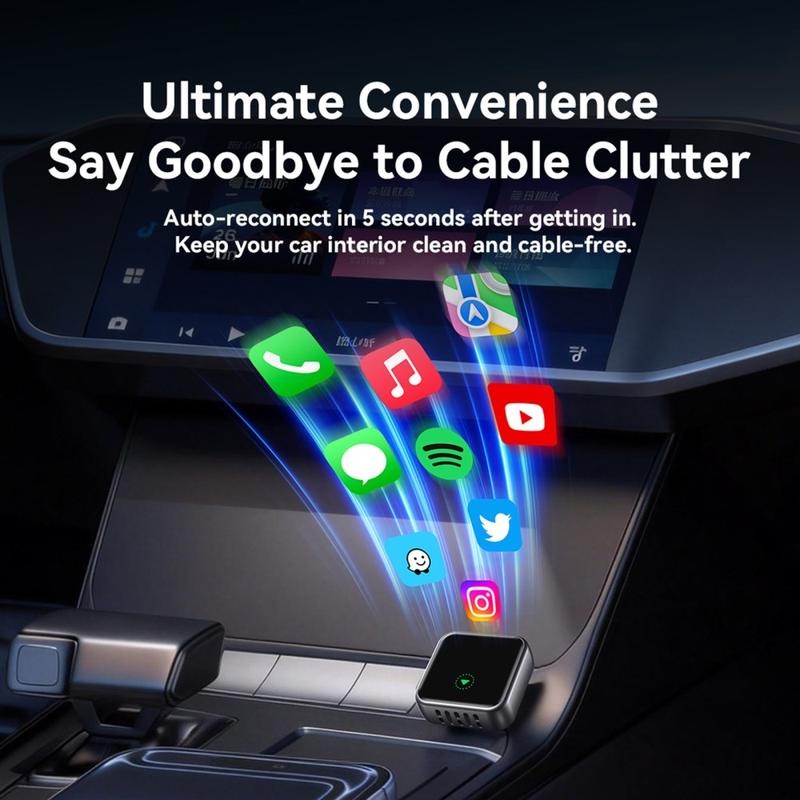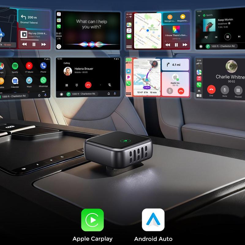 - Adaptador 2 em 1 compatível com Apple CarPlay sem fios e Android Auto sem fios