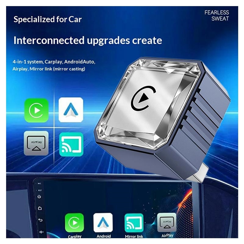 Adaptador CarPlay sem fios 4 em 1 Q1BVS em forma de diamante / CarPlay, Android Auto, AirPlay e Mirror Link Smart Box