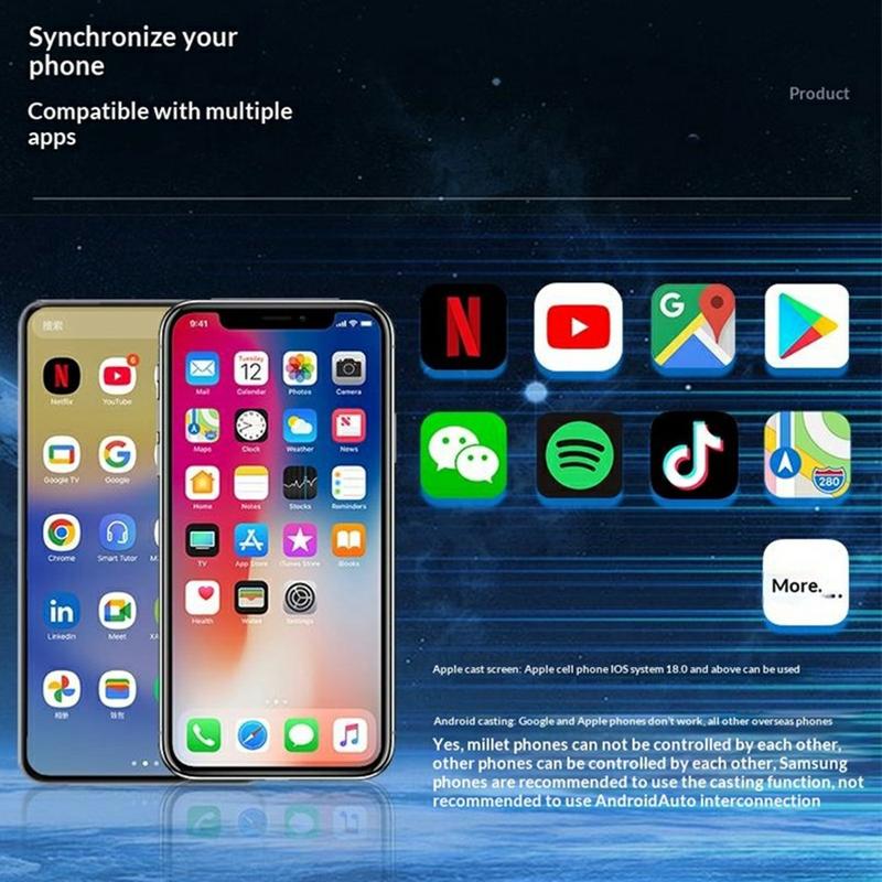 - Suporte 4 em 1: CarPlay, Android Auto, AirPlay, Mirror Link