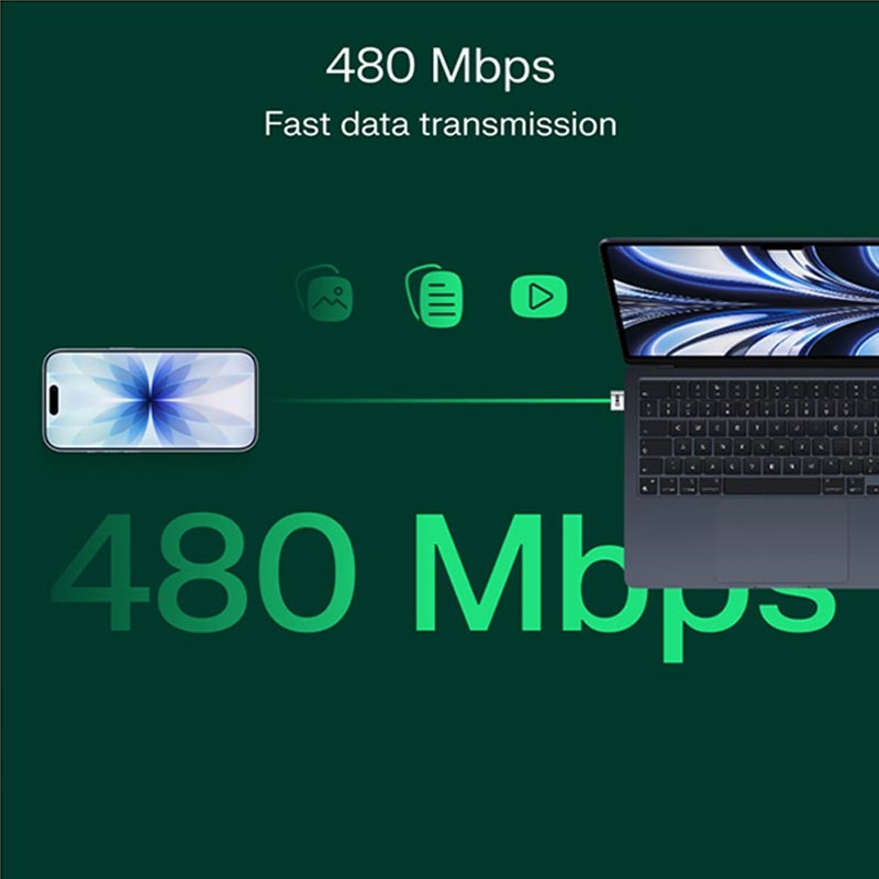 - Transferência rápida de dados - Suporta uma velocidade de transferência de 480Mbps, permitindo transferências de ficheiros rápidas e eficientes entre dispositivos como smartphones, tablets e computadores portáteis.