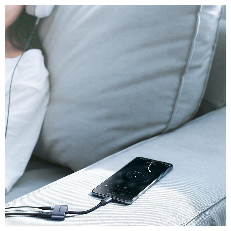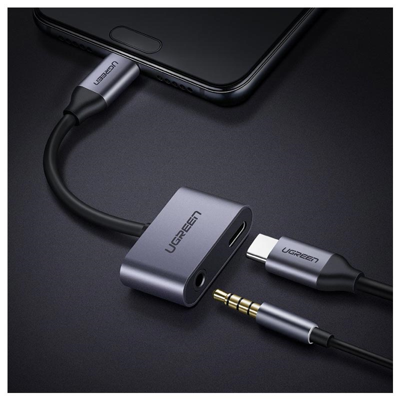 - Adaptador Ugreen 2 em 1 de carregamento & áudio tipo-C