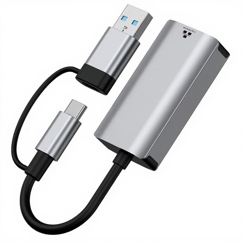 Desfrute de uma Internet mais rápida e estável com este adaptador USB-C para Ethernet 2,5G. Concebido com uma interface dupla (USB-C + USB 3.0), funciona com uma vasta gama de dispositivos, desde ultrabooks modernos a computadores de secretária. O seu tamanho compacto, o potente chip Realtek RTL8156B e a configuração plug-and-play fazem dele a solução perfeita para quem precisa de uma ligação de rede com fios fiável.