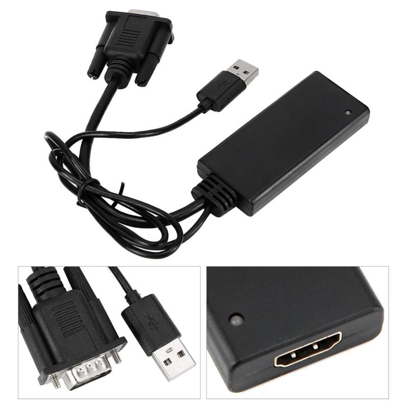 Conversor VGA para HDMI com alimentação USB - Adaptador de vídeo 1080P com áudio para PC, laptop, DVD e consolas de jogos