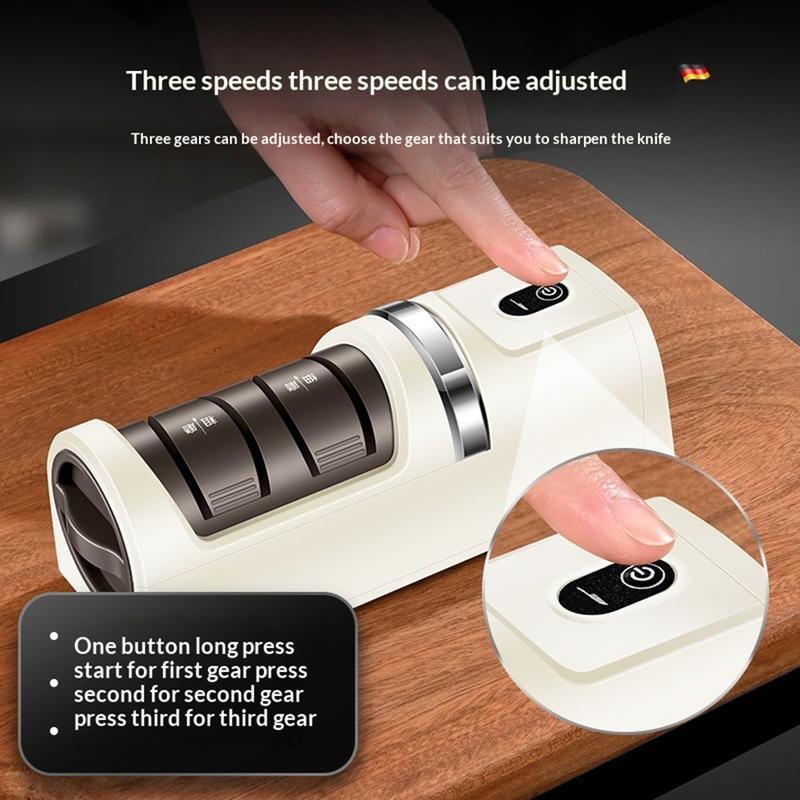 Afiador elétrico sem fios de 12W com 3 velocidades e disco de diamante para facas de cozinha