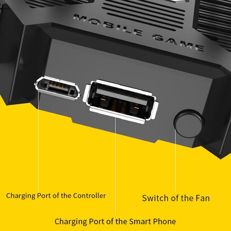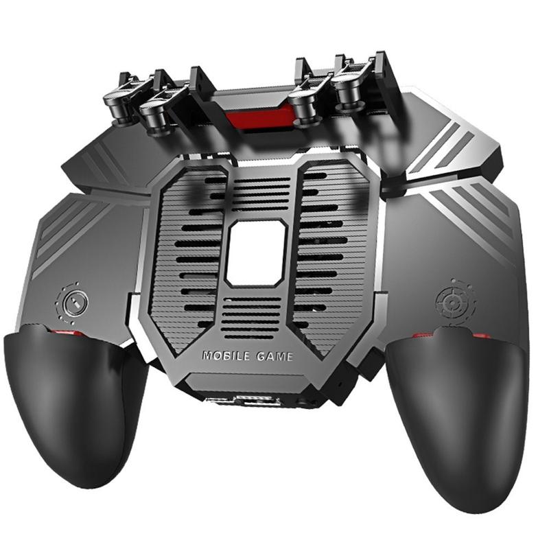 AK77 Mobile Game Controller PUBG Game Controller Gamepad com gatilho para jogos de 6 dedos e ventoinha de arrefecimento - Bateria recarregável preta/1200mAh