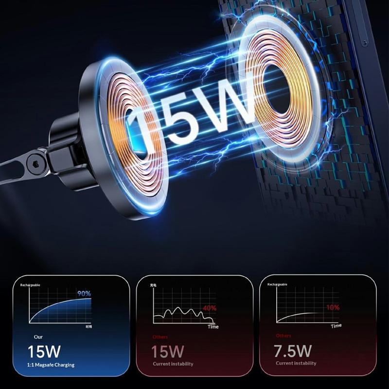 AKD255 Carregador sem fios magnético de 15W / Suporte para automóvel para painel de instrumentos e para-brisas - Compatível com MagSafe