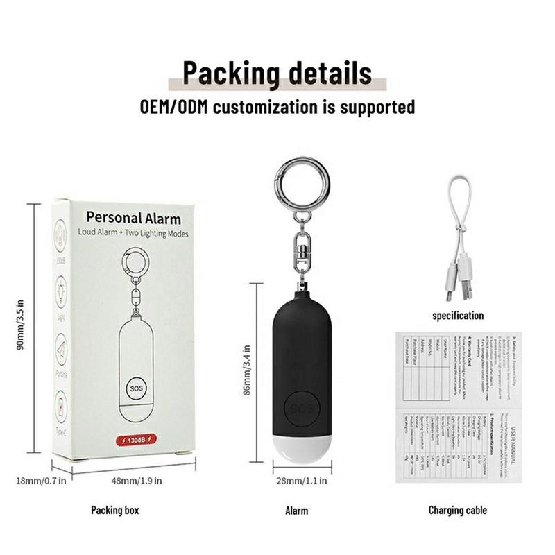 Alarme de segurança pessoal PA100 130 dB - Sinalizador LED recarregável, disparador duplo e 2 anos de espera
