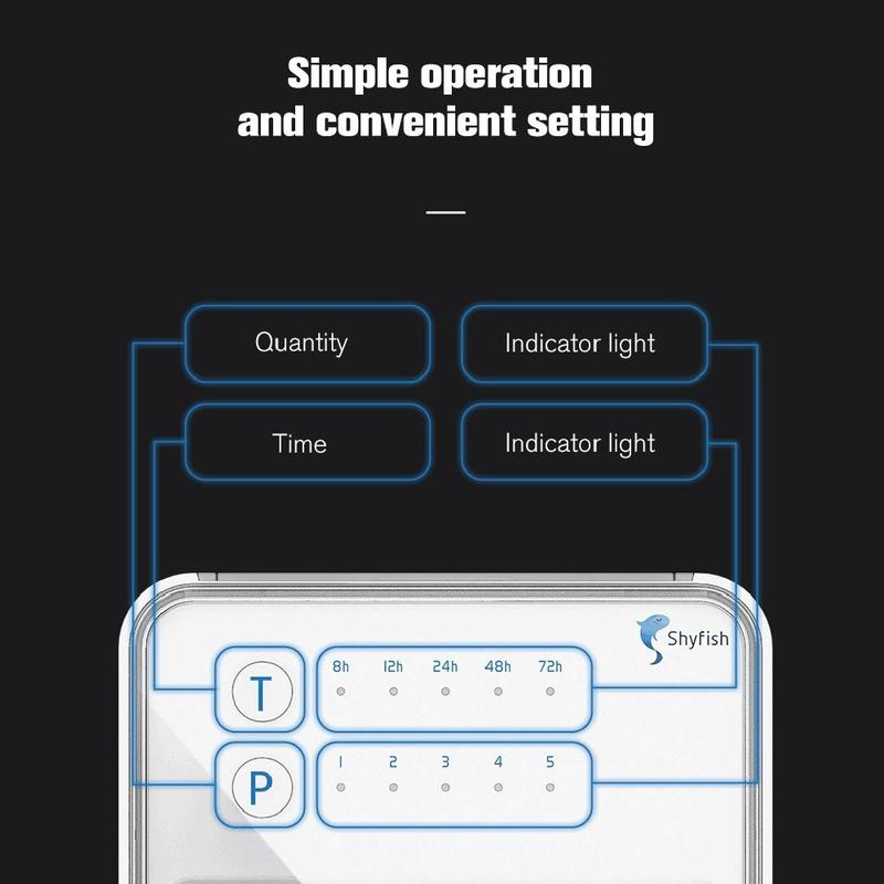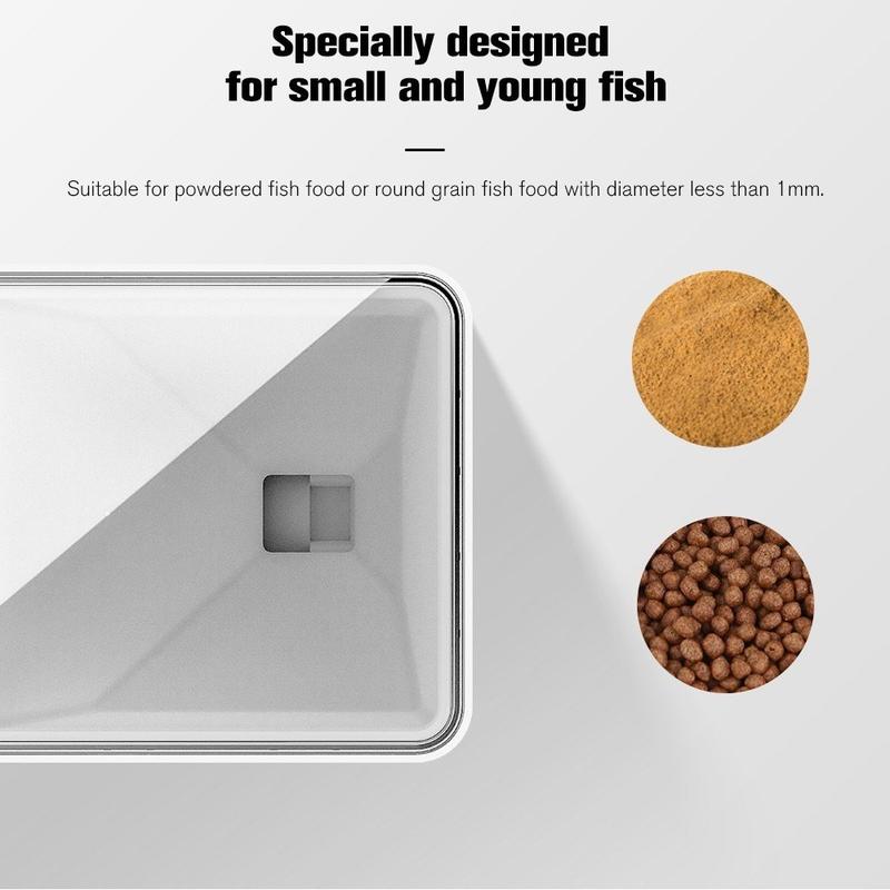 - Capacidade de 70ml com alimentação controlada: Acomoda comida suficiente para os peixes, dispensando porções mínimas de 0,2g para evitar a sobrealimentação.